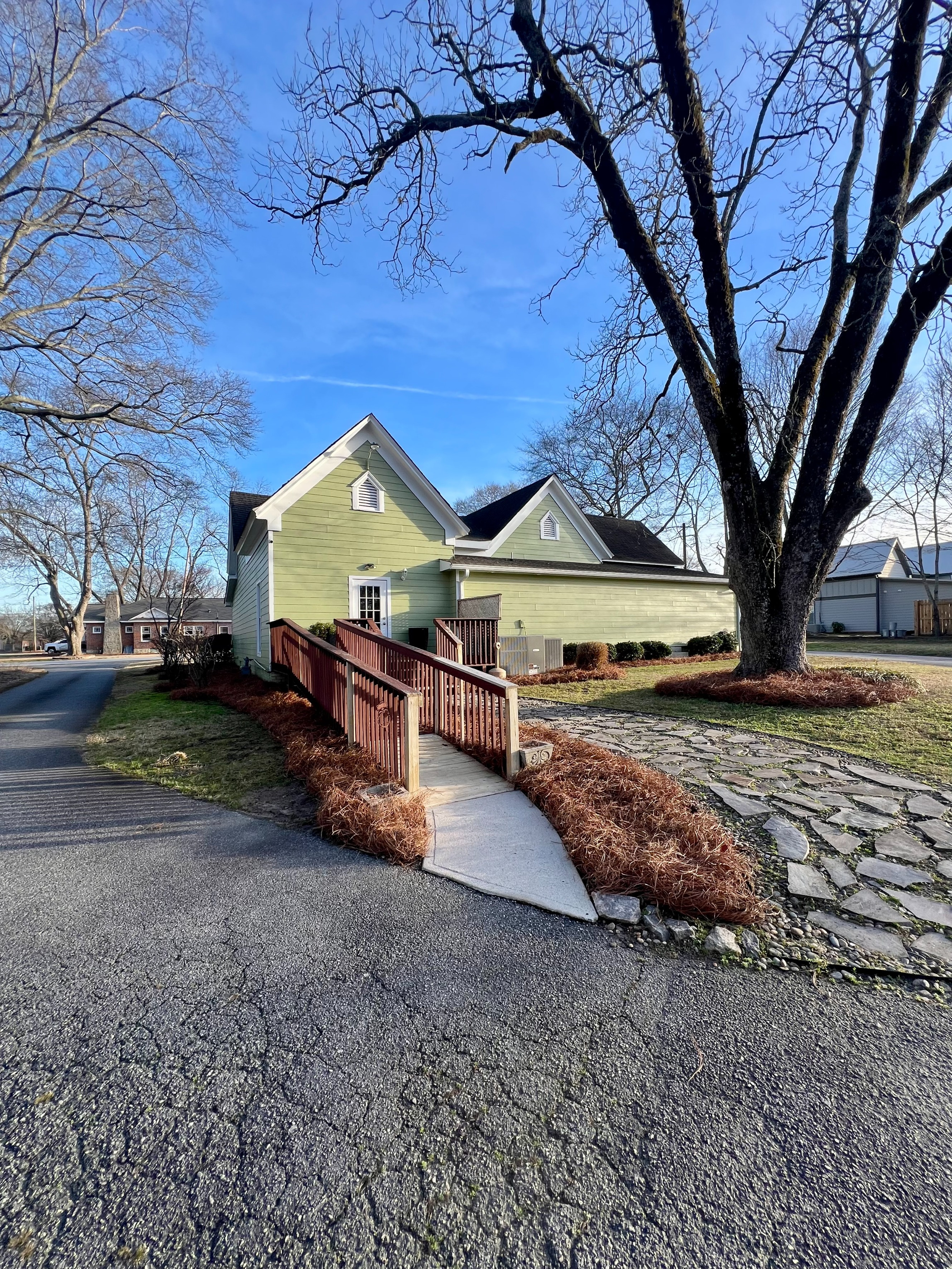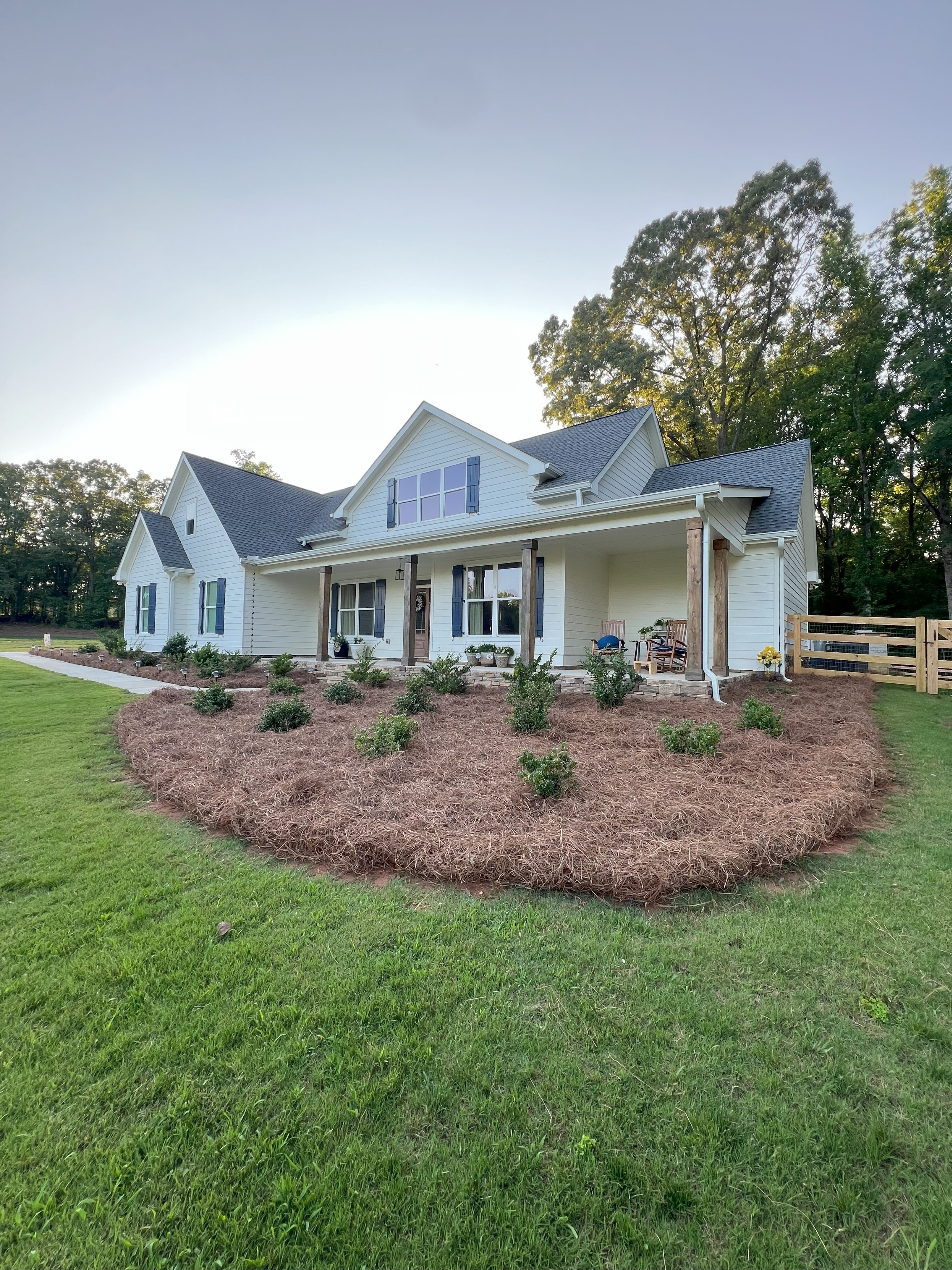 Pine straw blends beautifully with wooded properties and homes that want a softer, organic feel.
